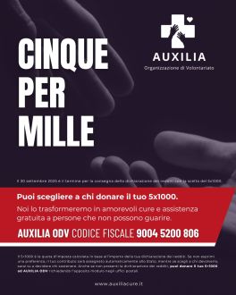 Scegli di devolvere ad AUXILIA ODV il tuo 5×1000. Lo trasformeremo in amorevoli cure a persone affette da malattie inguaribili e assistenza gratuita alle loro famiglie.